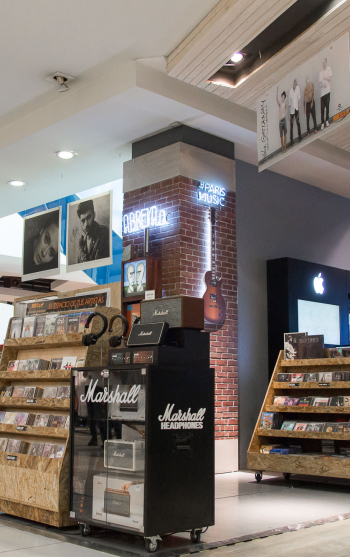 Esta fortaleza hace que importantes marcas de la industria musical le otorguen licencias , representaciones y distribuciones , que hoy están en más de 300 puntos propios de venta.